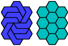 This web page and my other page, Mixed Polyiamond Compatibility, extend and correct the solutions in the JRM article. For sets of three hexiamonds, see Triple Hexiamonds.