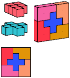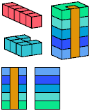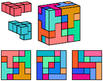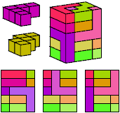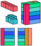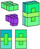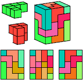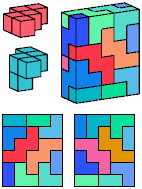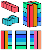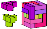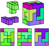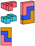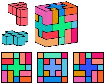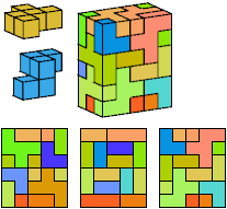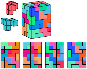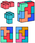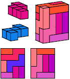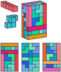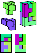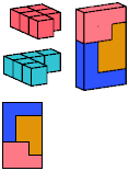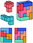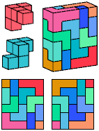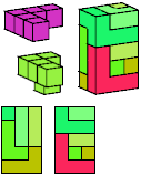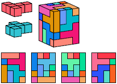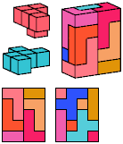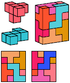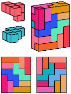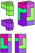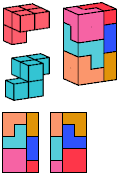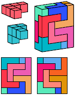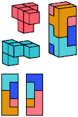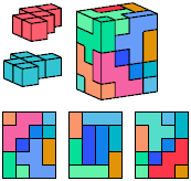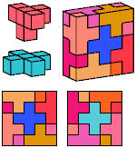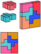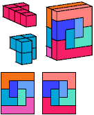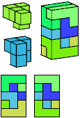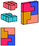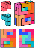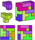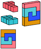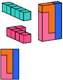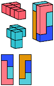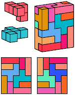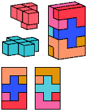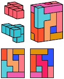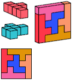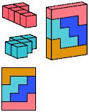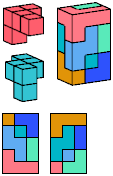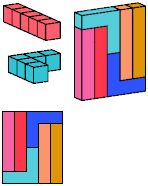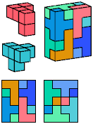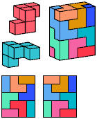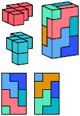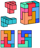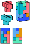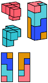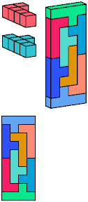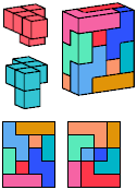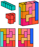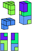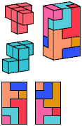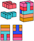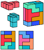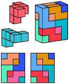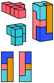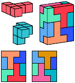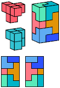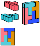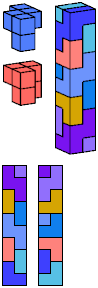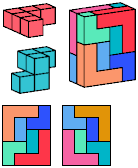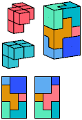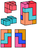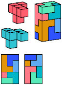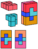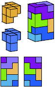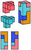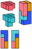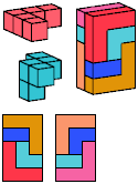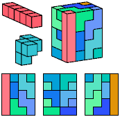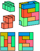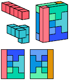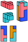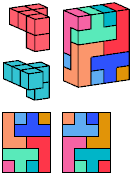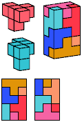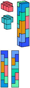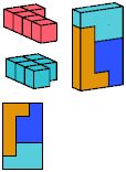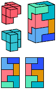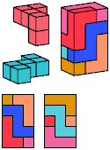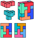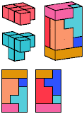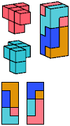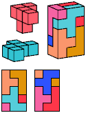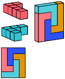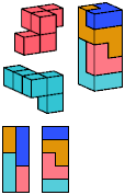 A pentacube is a solid made of 5 equal cubes joined face to face. There are 29 pentacubes, distinguishing mirror images.