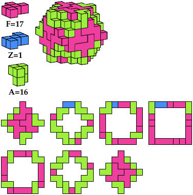 In March 2024, Edo Timmermans suggested excising the smaller of these polycubes from the larger, leaving a hollow shell with 170 cells, nd trying to tile the shell with 34 pentacubes.