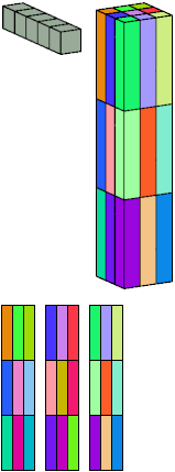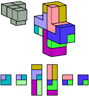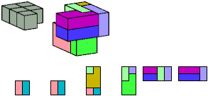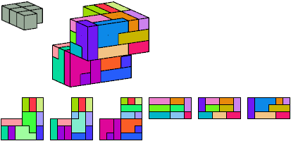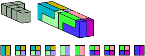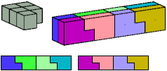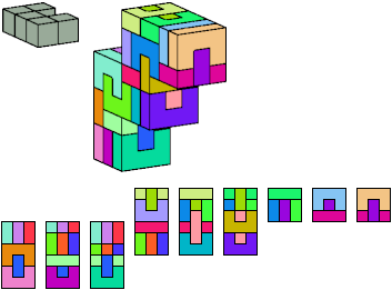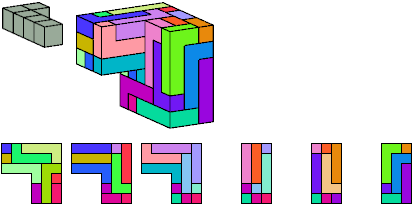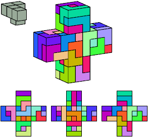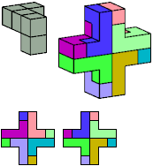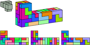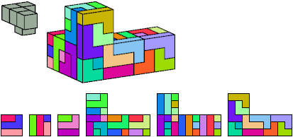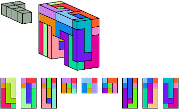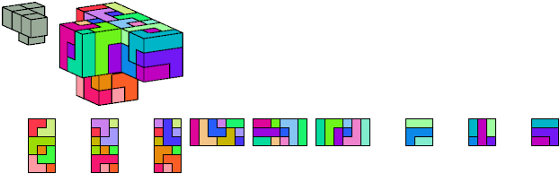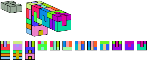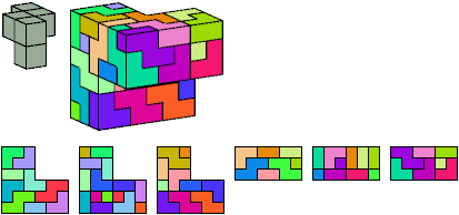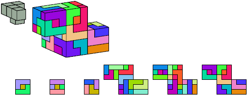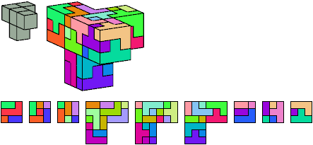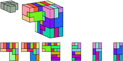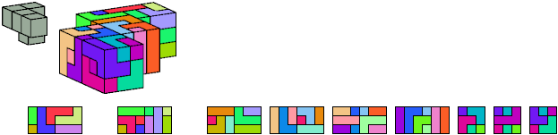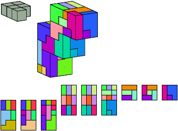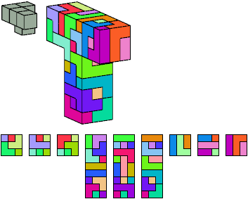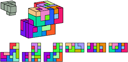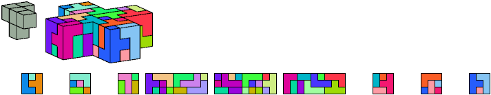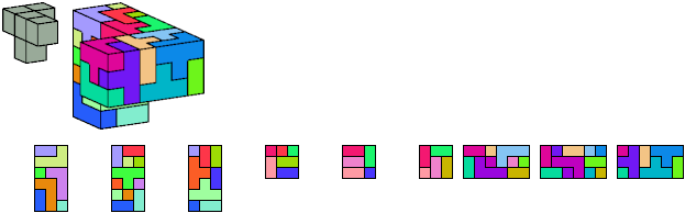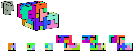 Here I show which pentacubes can tile a pentacube scaled up by a factor of two or three. If the tile is the same pentacube as that being scaled, the tiling is called a reptile. See Polycube Reptiles.