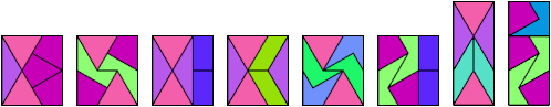 Below I show how to make a minimal rectangle using copies of three didrafters, at least one of each. These solutions are not necessarily unique, nor are their tilings. If you find a solution with fewer tiles, or solve an unsolved case, please write.