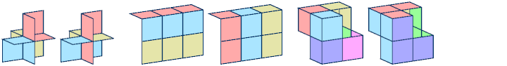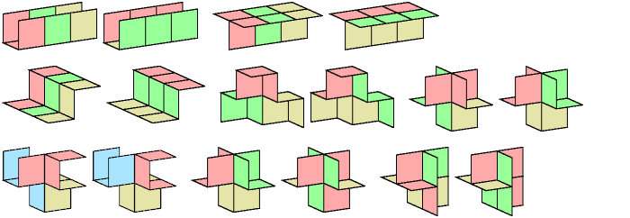 three unit squares edge to edge at straight or right angles in three dimensions.