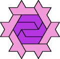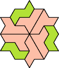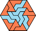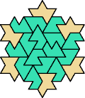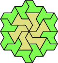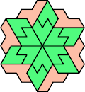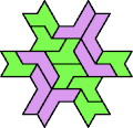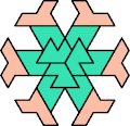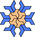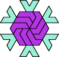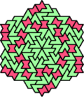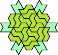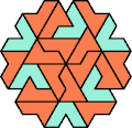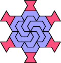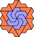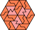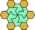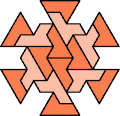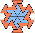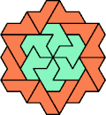 Here I show the smallest polyiamond with full symmetry and no holes that can be tiled by a hexiamond and a heptiamond, using at least one copy of each. The solutions shown are not necessarily uniquely minimal.
