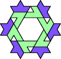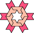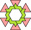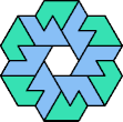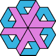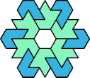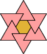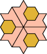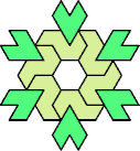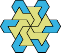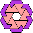 Here I show the smallest polyiamond with full symmetry that can be tiled by a hexiamond and a heptiamond, using at least one copy of each. The solutions shown are not necessarily uniquely minimal.