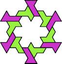 A Baiocchi Figure is an arrangement of copies of a polyform to achieve the highest symmetry class for its type of polyform. For polyiamonds, this means 12-fold symmetry, 6-rotary and mirror.
