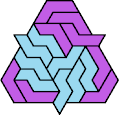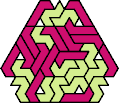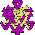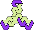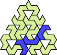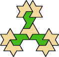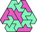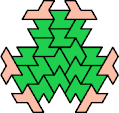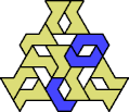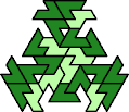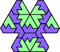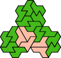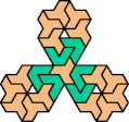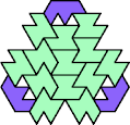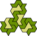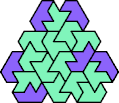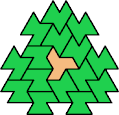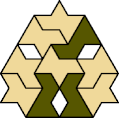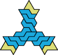 A tri-oddity is an arrangement of copies of a polyform with ternary rotary symmetry or better, using a number of copies that is not a multiple of 3.