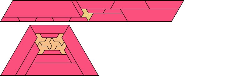 Here I show minimal known convex polygons formed by pairs of scaled heptiamonds. If you find a smaller solution or solve an unsolved case, please write.
