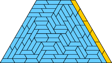 The blue trapezoid below has a slant height of 15 and bases of lengths 7 and 22. It can be extended to any greater width as shown by the yellow tiles.