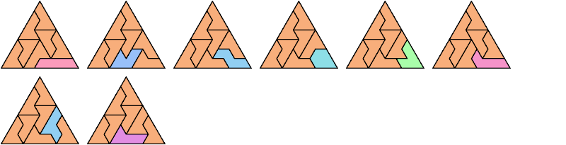 A heptiamond is a plane figure formed by joining 7 equilateral triangles edge to edge. There are 24 hexiamonds: