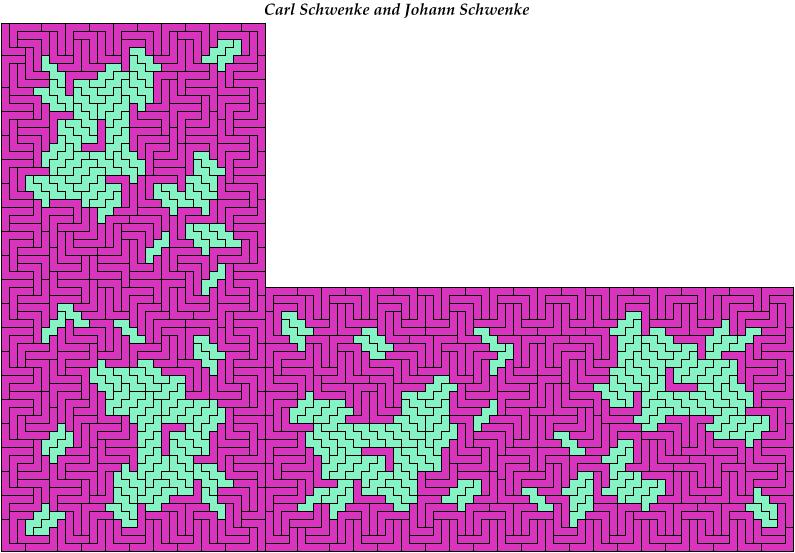 Many of the solutions shown were formed in this way, often from rectangular tilings discovered by Mike Reid. They are not all known to be the smallest possible. If you find a smaller solution or solve an unsolved case, please write.