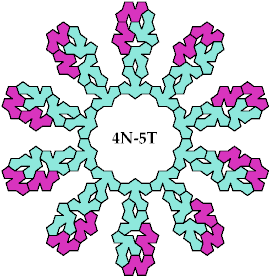 A Baiocchi figure is a figure formed by joining copies of a polyform and having the maximal symmetry for the polyform's class. For polypents, that means the symmetry of a regular decagon, or 10-way rotary with reflection.