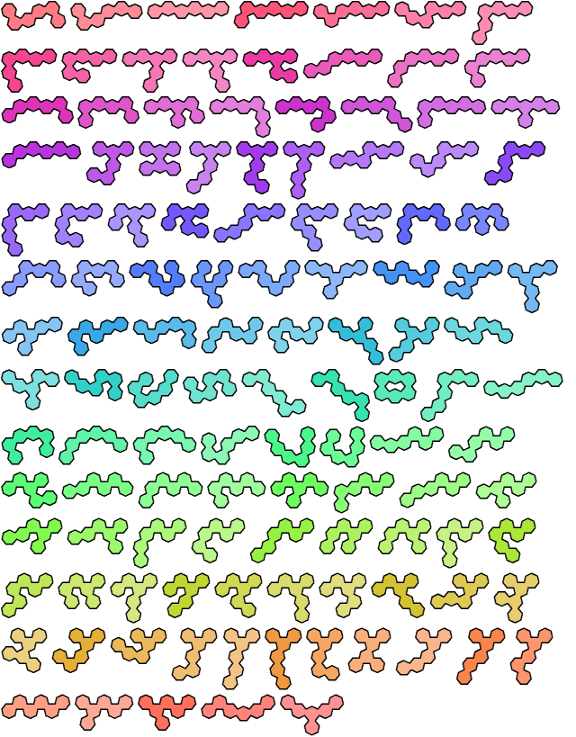 Sascha Kurz have enumerated polyhepts up through order 16.