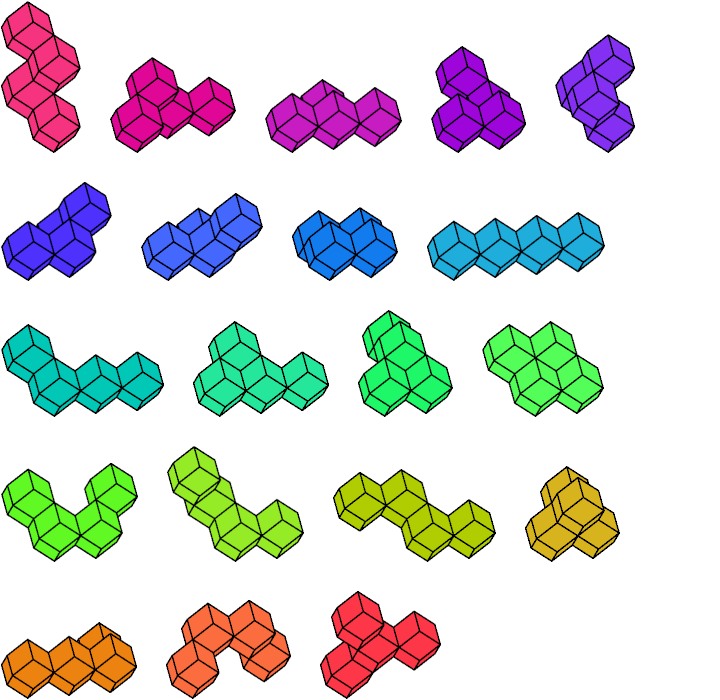 Two-sided polyrhons may be reflected as well as rotated. One-sided polyrhons may be rotated but not reflected.