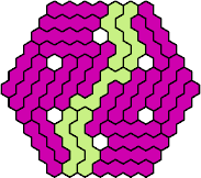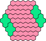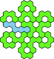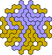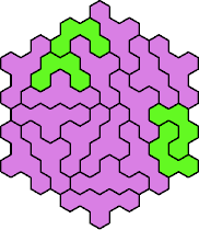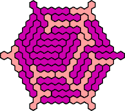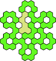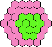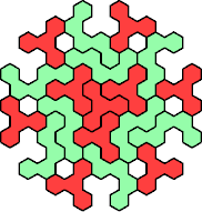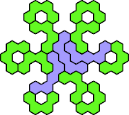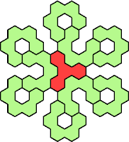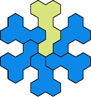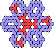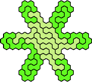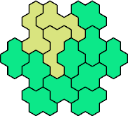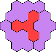 Here are the smallest known fully symmetric polyhexes with an odd number of cells, formed by copies of a given tetrahex and pentahex, using at least one of each.