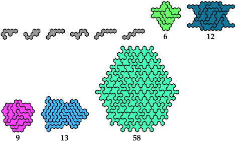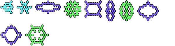 A heptahex is a figure made of seven regular hexagons joined