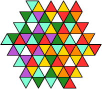 cells in the equilateral triangular grid along edges or at corners or both.
