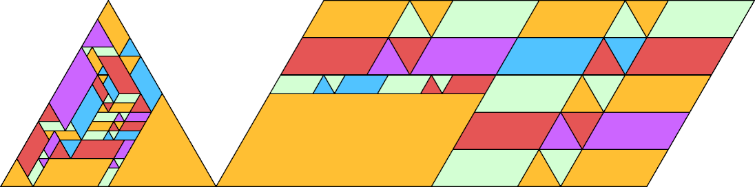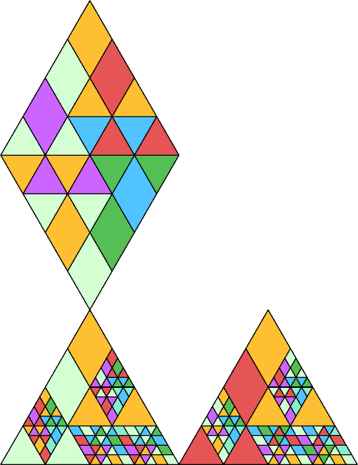Many of these tilings first appeared in Erich Friedman's Math Magic for August 2010, which also shows irreptilings for polykings. For irreptilings of shapes other than polykings and polymings, see Math Magic for October 2002.