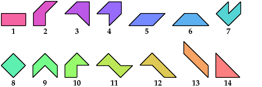 There are 14 such figures, not distinguishing reflections and rotations.