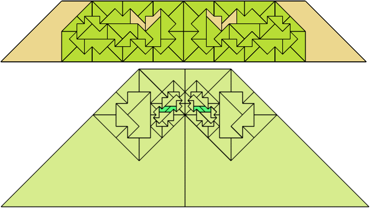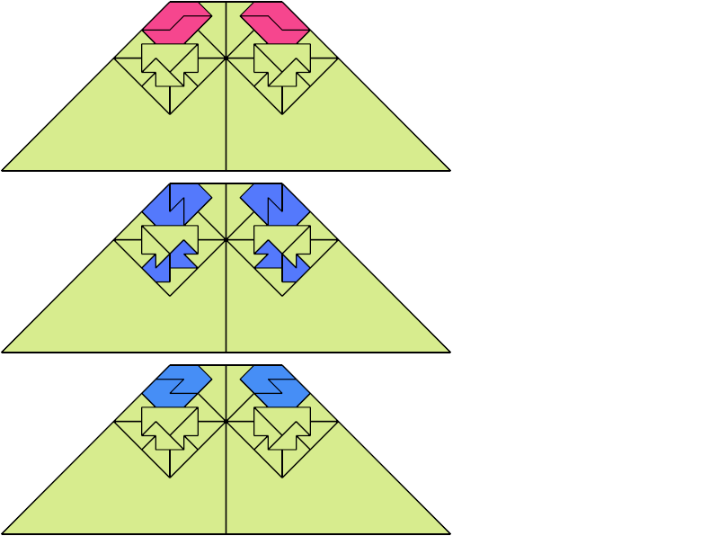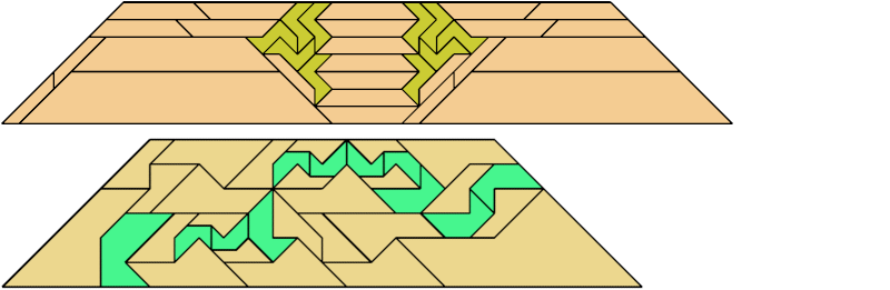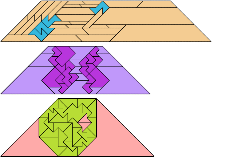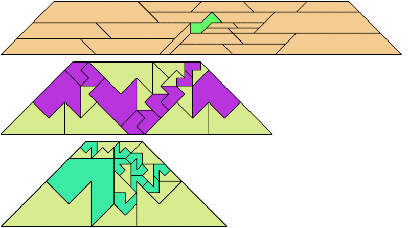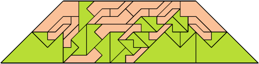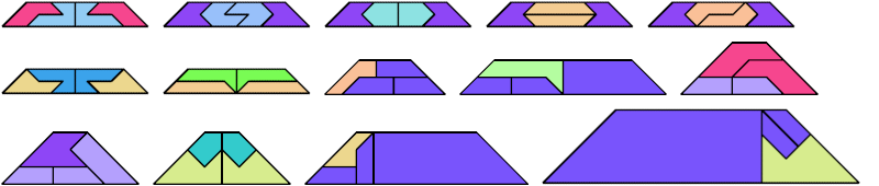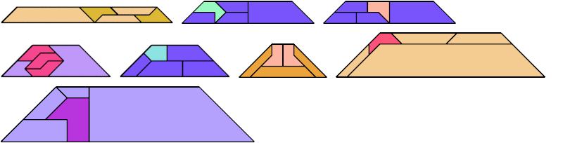 Theoretically, scaled pentabolo 24 and any other scaled pentabolo can together tile an isosceles trapezium. I do not have tilings for all such pairs of scaled pentaboloes.