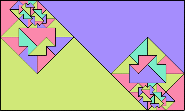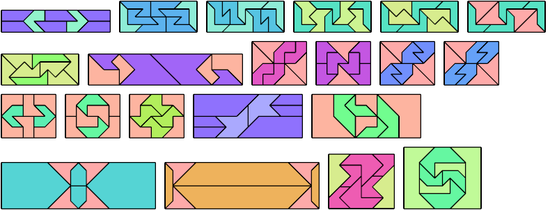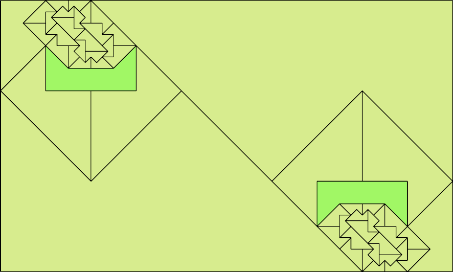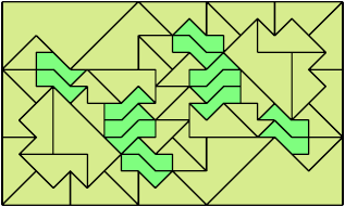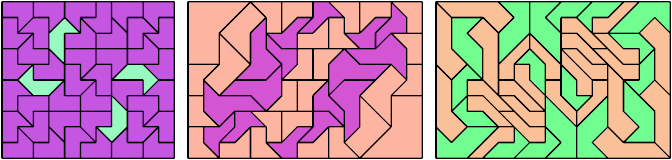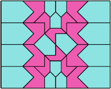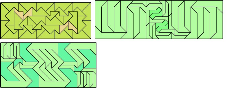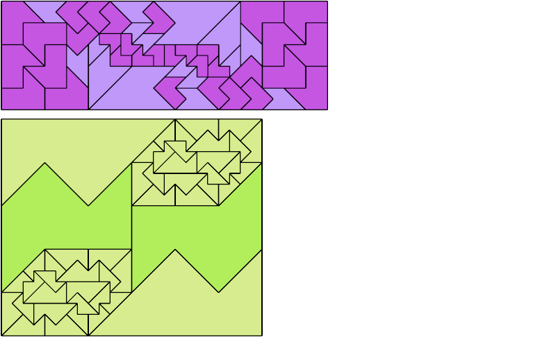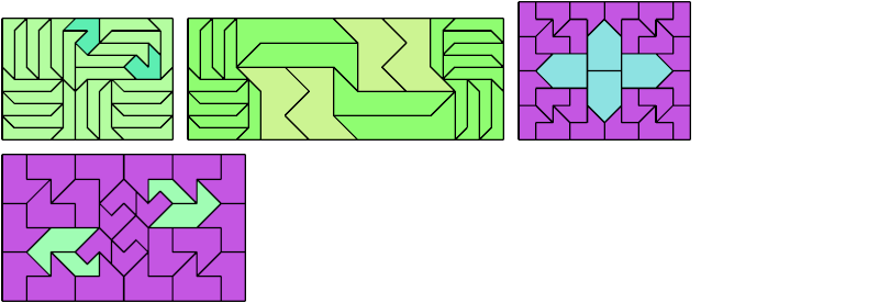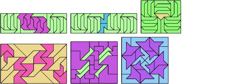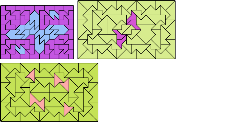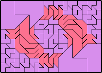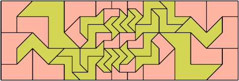 Here I show how a rectangle can be tiled by a pair of scaled pentaboloes, using at least one copy of each and as few total copies as is known to be possible. If you find a solution with fewer tiles or solve an unsolved case, please write.