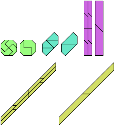 Few polyforms of any kind form reptiles. A bireptile is a figure of which copies can be joined to form two joined, equally enlarged copies of the original figure.