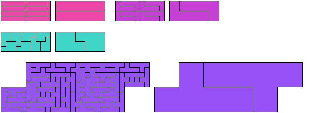 Few polyforms of any kind form reptiles. A bireptile is a figure of which copies can be joined to form two joined, equally enlarged copies of the original figure.