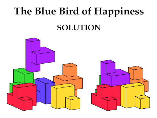 Place them on a flat surface and hide the blue bird under the other five birds.