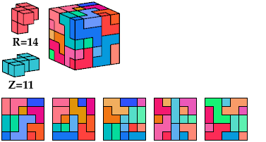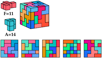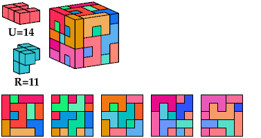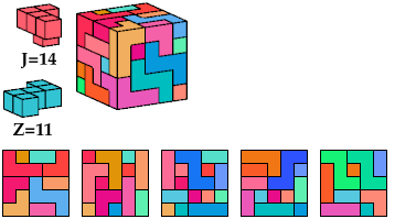 See also Tiling a Cuboctal Polycube with Two Pentacubes, Tiling a Rhonic Polycube with Two Pentacubes, and Pentacube Pair Pyramids.
