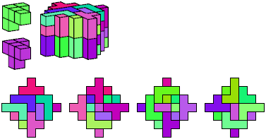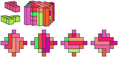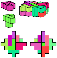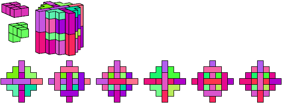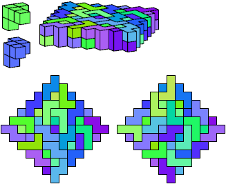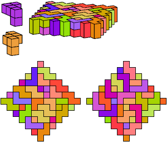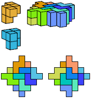 See also Tiling Triangular Prism Polycubes with Two Pentacubes and Tiling Pyramid Prism Polycubes with Two Pentacubes.