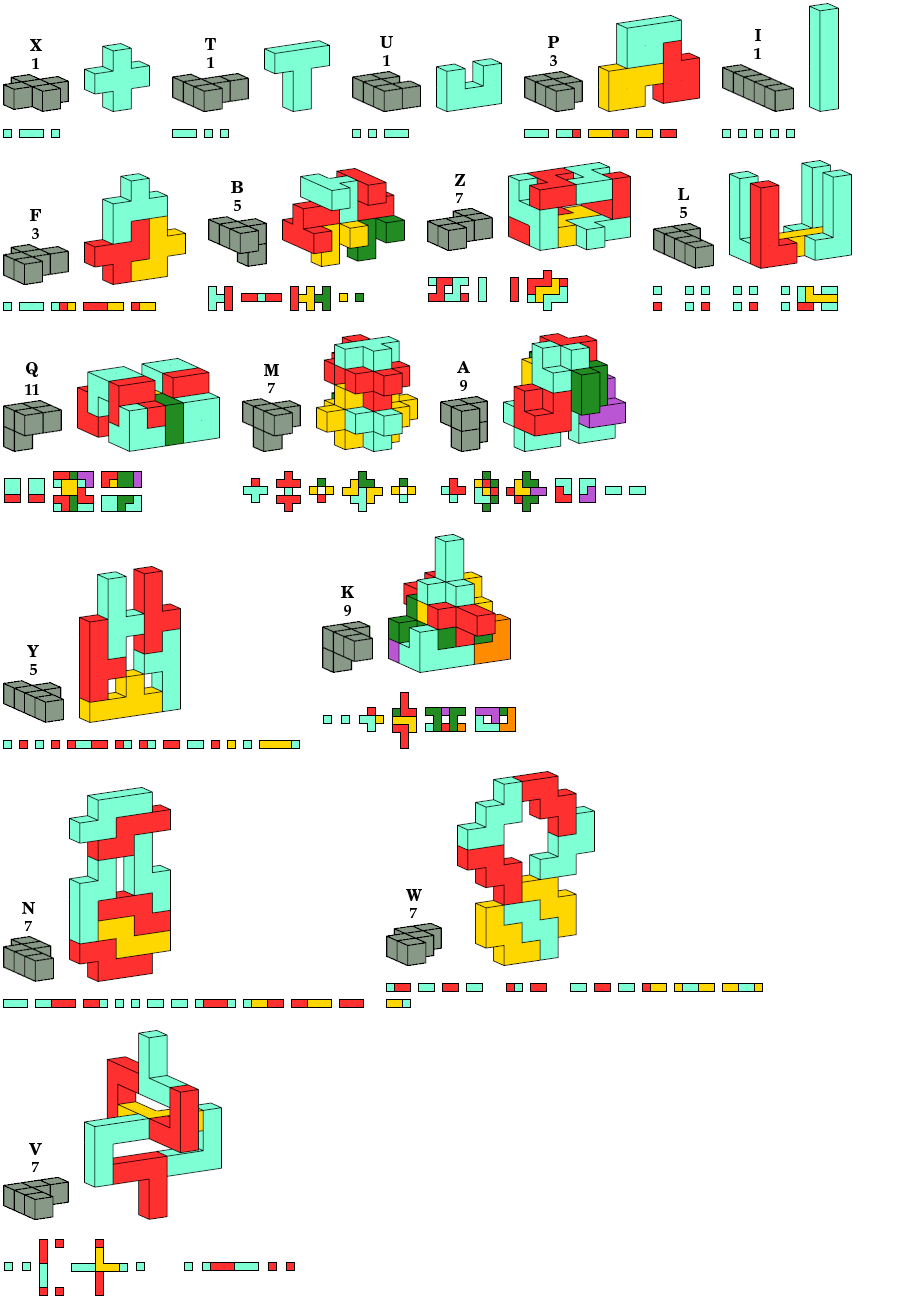 A pentacube is a solid made of five cubes joined