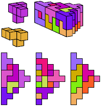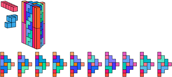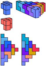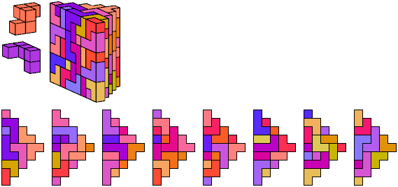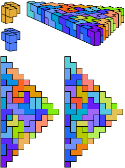 See also Tiling Triangular Prism Polycubes with Two Pentacubes and Tiling Diamond Prism Polycubes with Two Pentacubes.