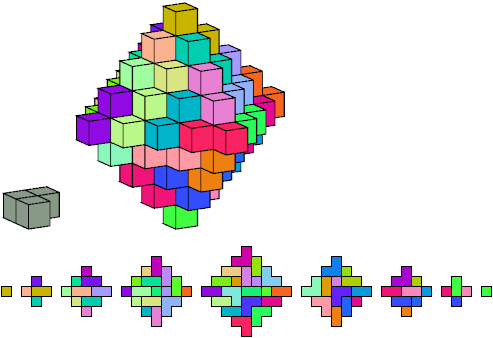 consisting of a solid diamond of order 5 dissected into 43 right tricubes: