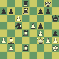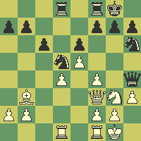 13. f4 Nb6; 14. Bb3 O-O; 15. Rbd1 Nd5; 16. Qf3 Qh4; 17. h3.