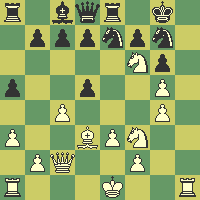 12...B:g5; 13. hg Ne7; 14. Ne4 ed; 15. Nf6+ Kf8; 16. N:h7+ Kg8; 17. Nf6+ 1:0.