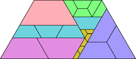 Here I show all known reverse partridge tilings with n=6 in which equal tiles are contiguous. According to Wainwright, this subproblem has apparently not been studied before. If you solve any cases not shown here, please write.