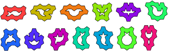 Here I show all cyclic polypents with up to 12 cells. I do not distinguish mirror images.