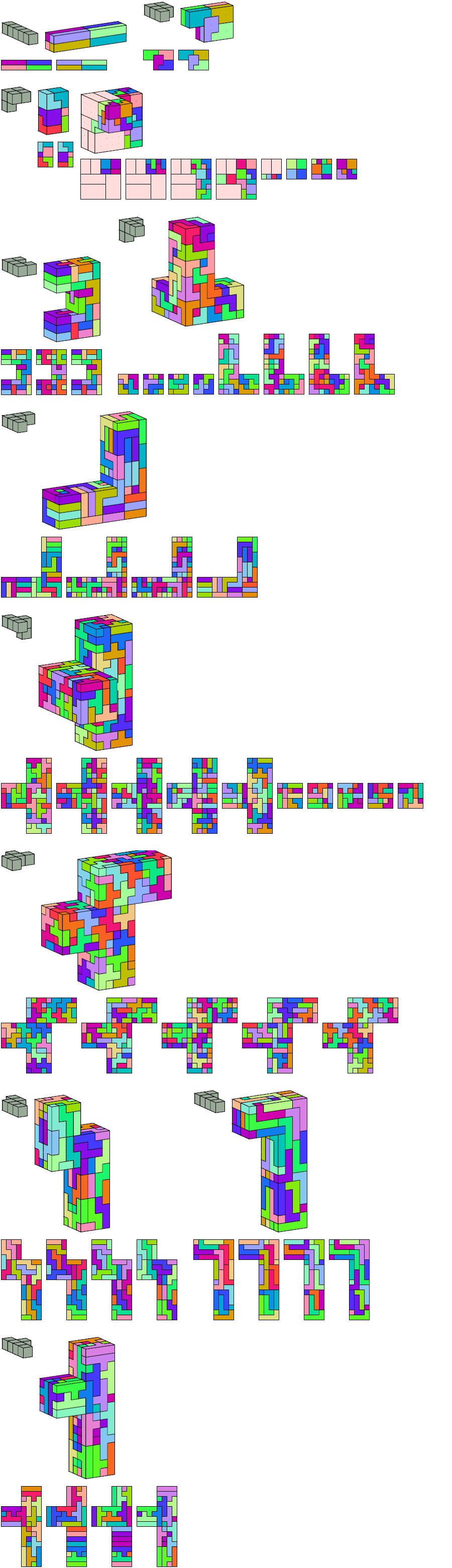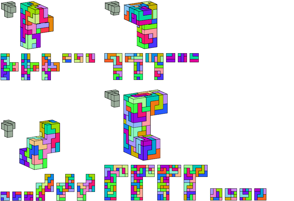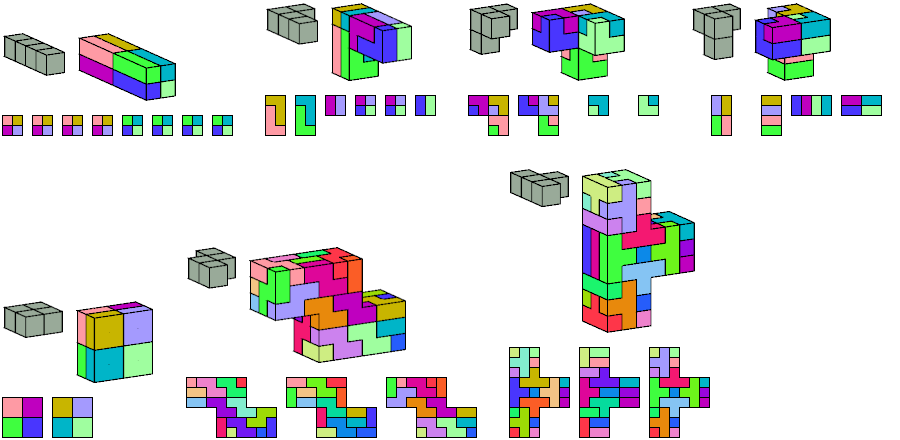 | Pentacube | Boxes | Cube | Tiles | Minimal? | |