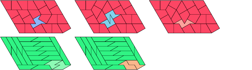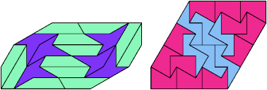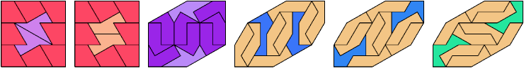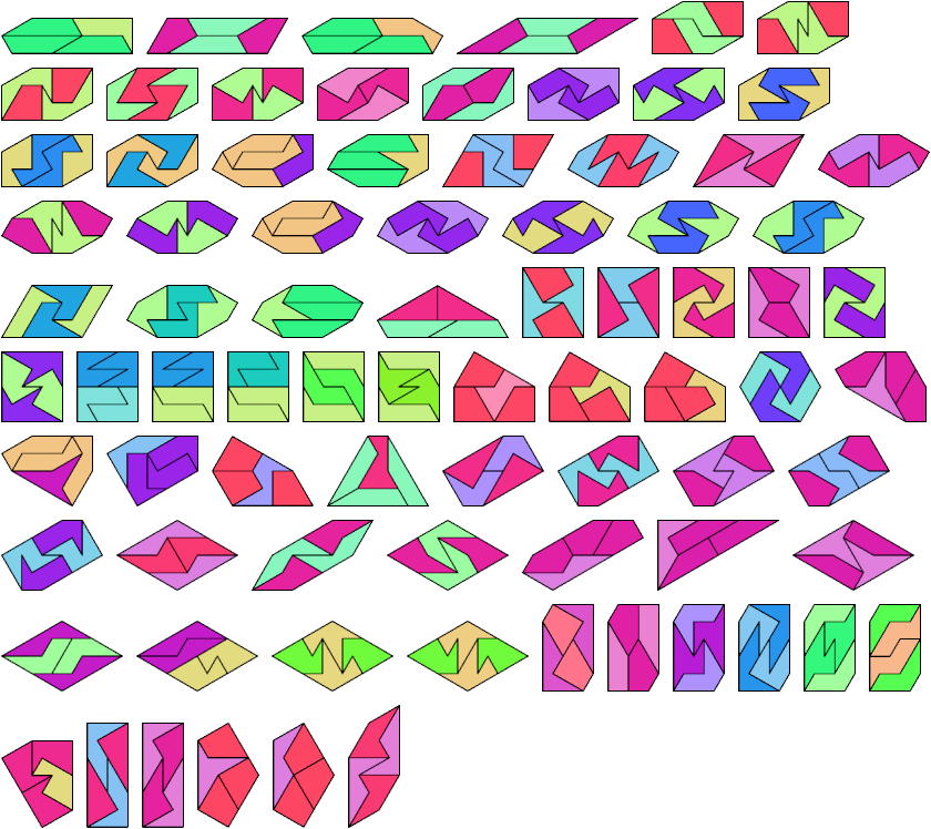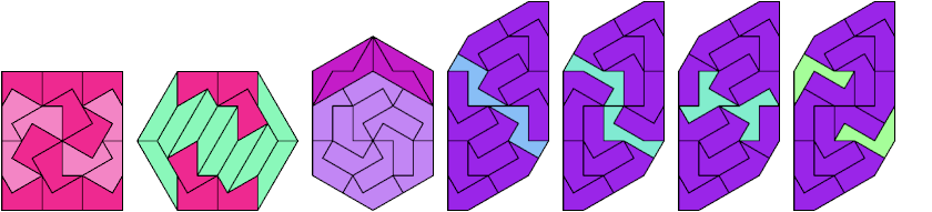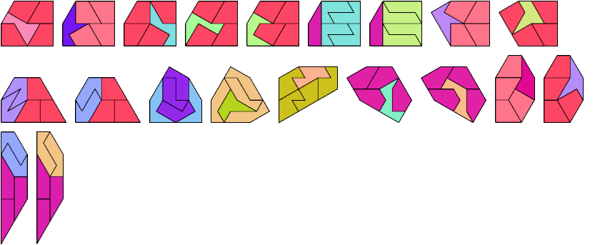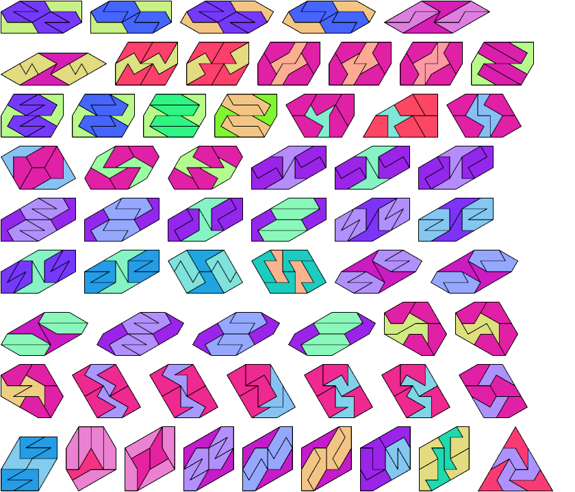 Below I show how to make a minimal convex figure using copies of two tridrafters, at least one of each. These solutions are not necessarily unique, nor are their tilings. If you find a solution with fewer tiles, or solve an unsolved case, please write.