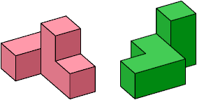 Arrange these two pieces to make 8 shapes with mirror symmetry, and 2 shapes with rotary symmetry.