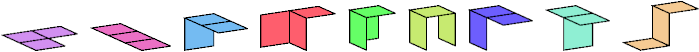 three unit squares edge to edge at straight or right angles in three dimensions.