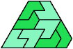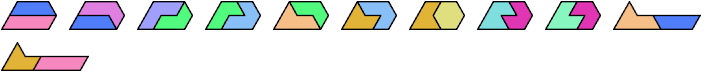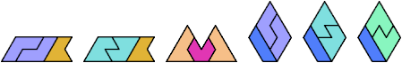 A hexiamond is a plane figure formed by joining 6 equal equilateral triangles edge to edge. There are 12 hexiamonds: