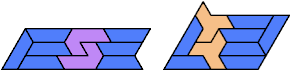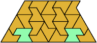 Here I show the smallest known pentagonal (five-sided) polyiamonds that can be formed by copies of a pentiamond and a heptiamond, using at least one of each. If you find a smaller solution, please write.