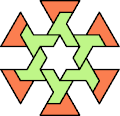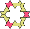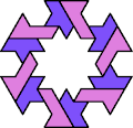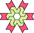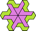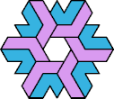 Here I show the smallest polyiamond with full symmetry that can be tiled by a hexiamond and a heptiamond, using at least one copy of each. The solutions shown are not necessarily uniquely minimal.