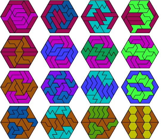 For more general tilings with two hexiamonds, see the Poly Pages.