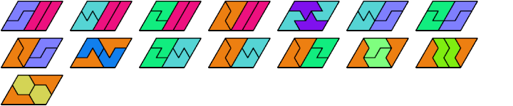that can be formed by copies of two hexiamonds, using equally many of each.