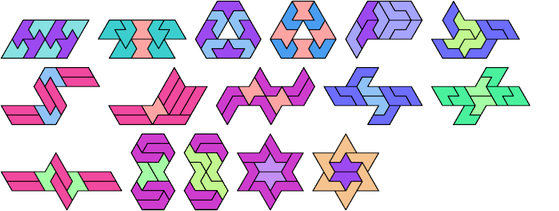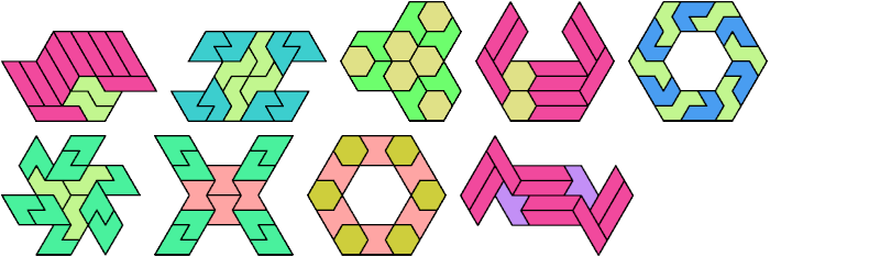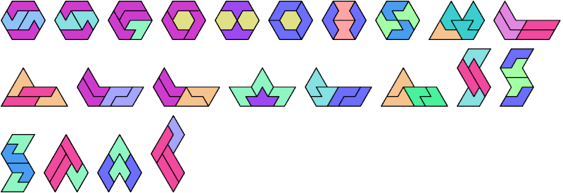 The blue indexes are links to tilings by the specified hexiamond alone.