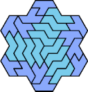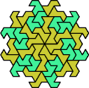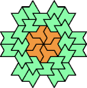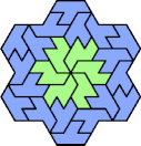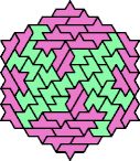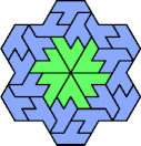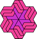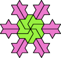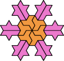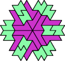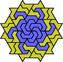A Baiocchi Figure is an arrangement of copies of a polyform to achieve the highest symmetry class for its type of polyform. For polyiamonds, this means 12-fold symmetry, 6-rotary and mirror.