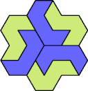 A Baiocchi Figure is an arrangement of copies of a polyform to achieve the highest symmetry class for its type of polyform. For polyiamonds, this means 12-fold symmetry, 6-rotary and mirror.