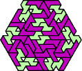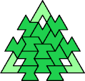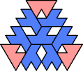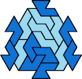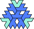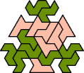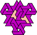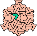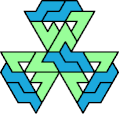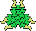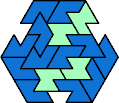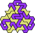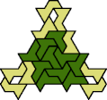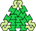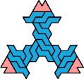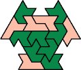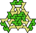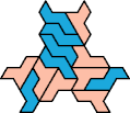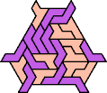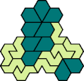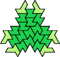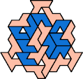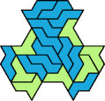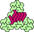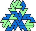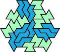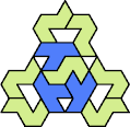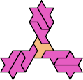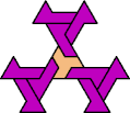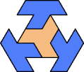 A tri-oddity is an arrangement of copies of a polyform with ternary rotary symmetry or better, using a number of copies that is not a multiple of 3.