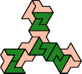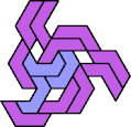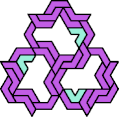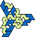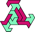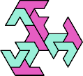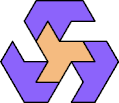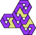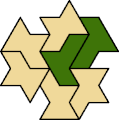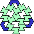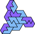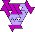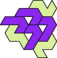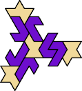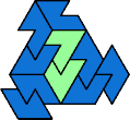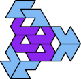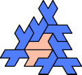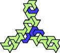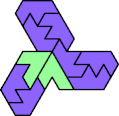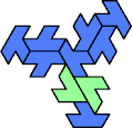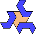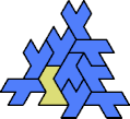 A tri-oddity is an arrangement of copies of a polyform with ternary rotary symmetry or better, using a number of copies that is not a multiple of 3.